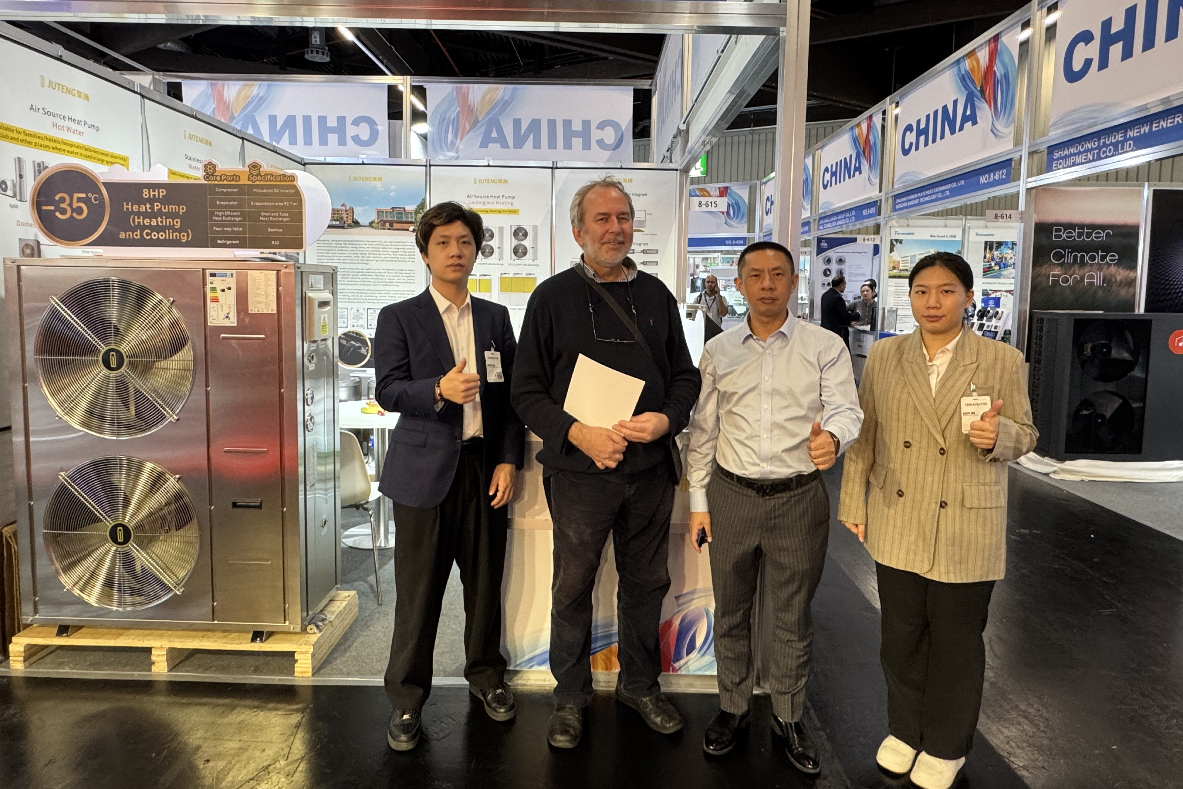聚騰的創新研發成果在本次展會中閃亮登場——超低溫冷暖機、恒溫泳池機、家用熱水機等覆蓋歐洲多個熱銷品類的環保空氣能產品,因其獨特的不銹鋼整機造型設計、行業領先的研發專利技術以及多領域的空氣能解決方案,引起現場觀眾的濃烈興趣,釋放出合作交流的積極信號。
